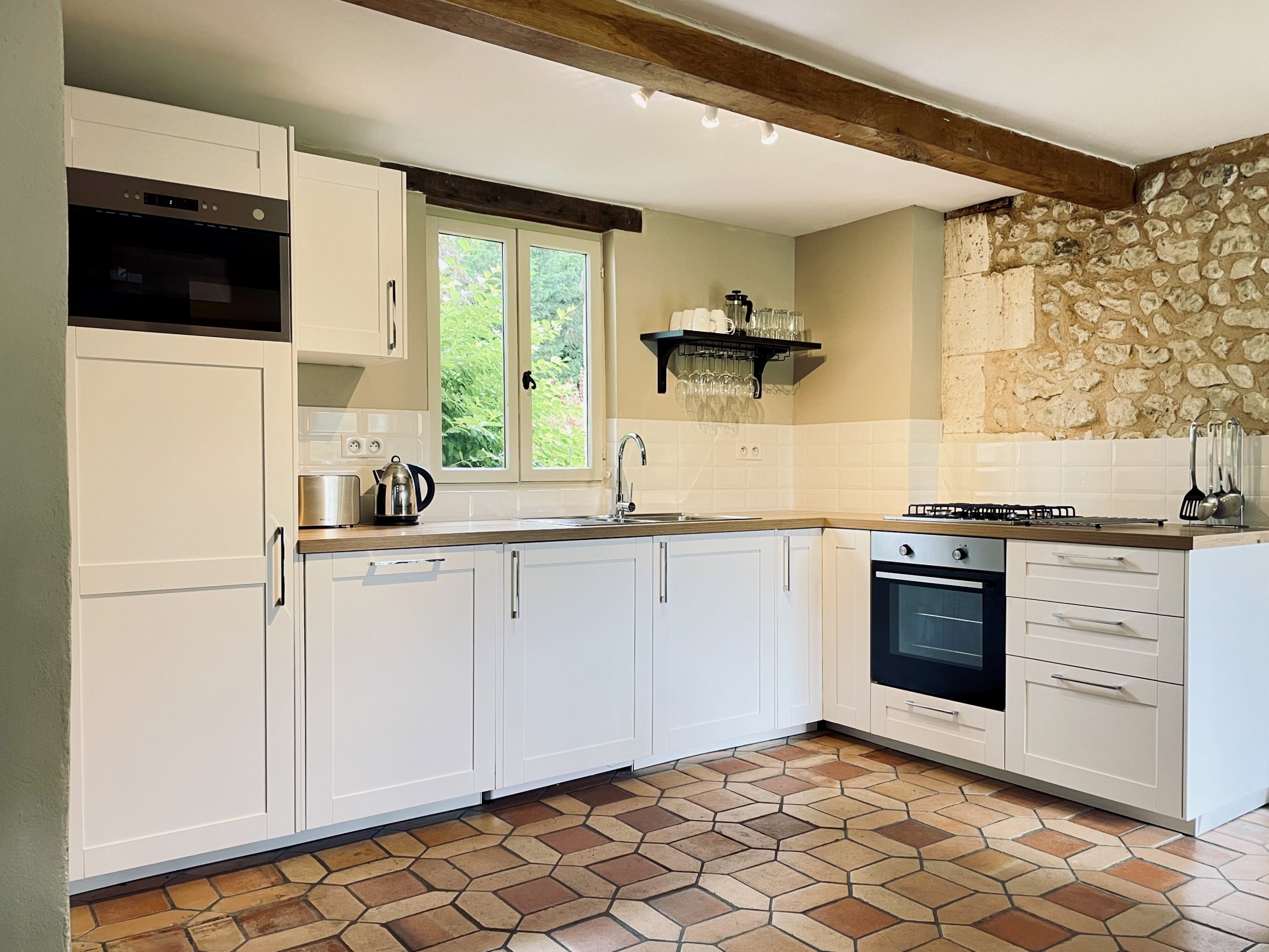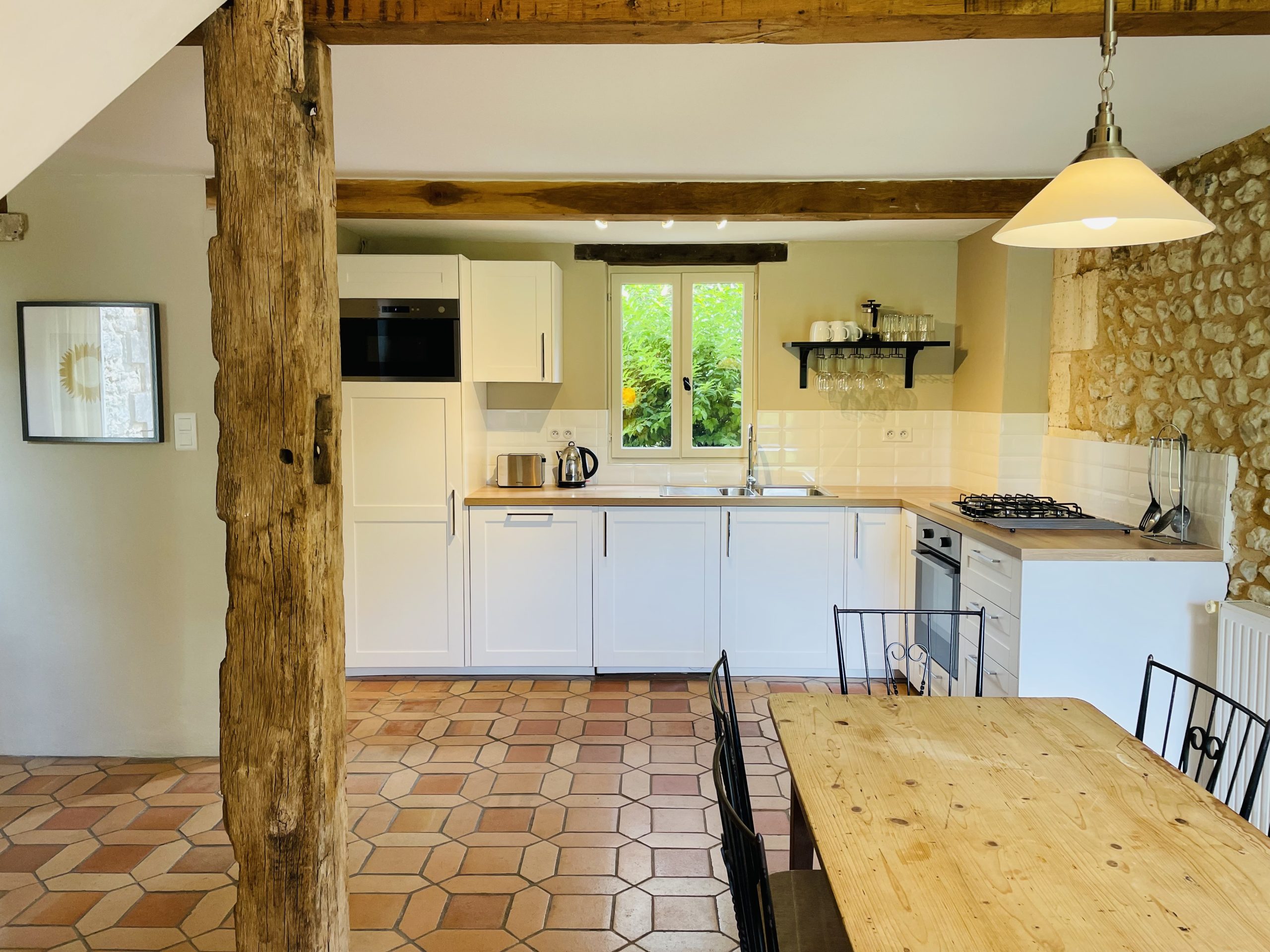 Les Jolies Arches dispose d'une cuisine bien conçue qui répond à tous vos besoins culinaires, ce qui en fait une maison parfaite loin de chez soi.