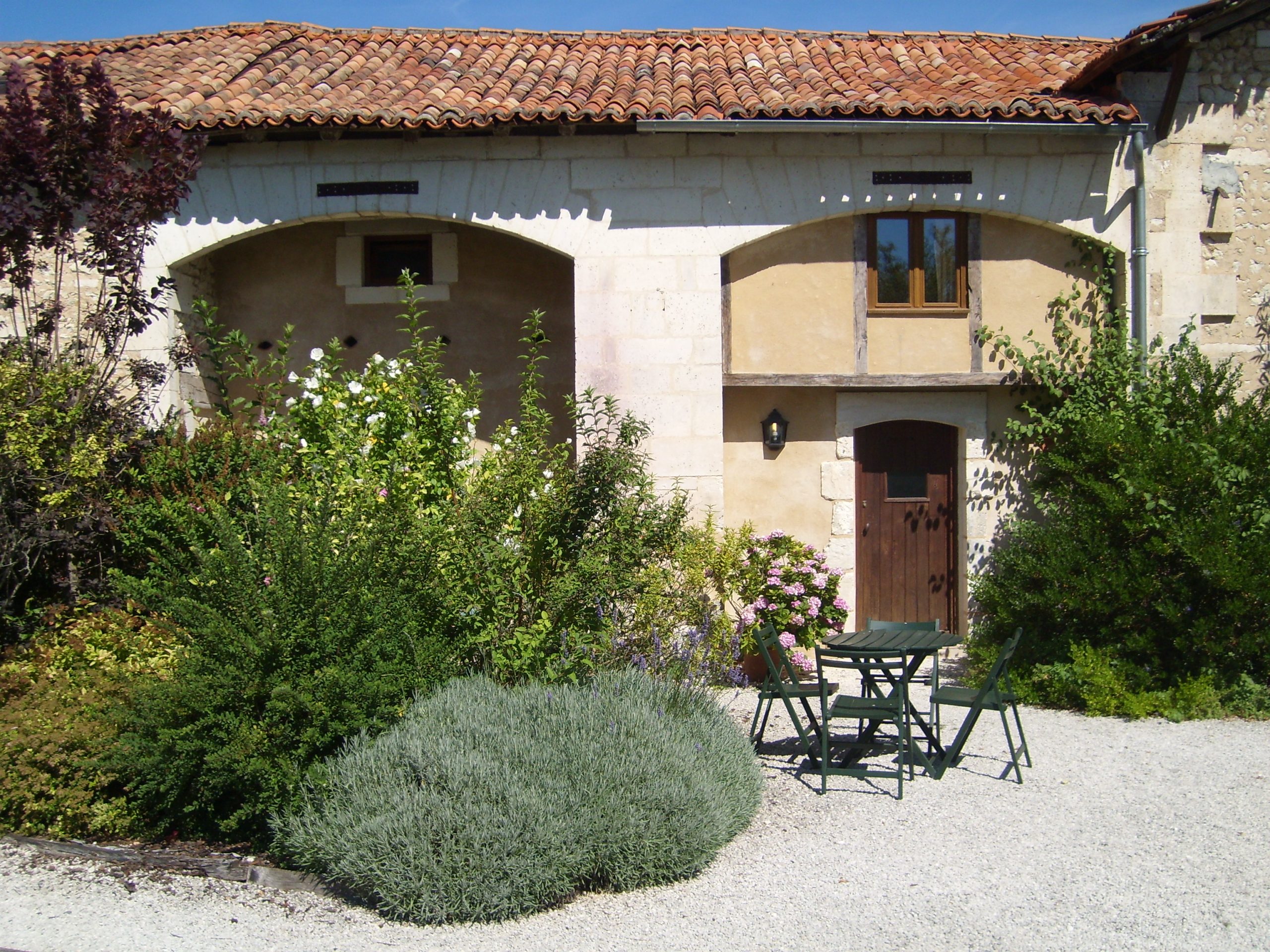 La terrasse des Jolie Arches s'étend sur un jardin commun qui mène gracieusement aux courts de tennis et au terrain de golf.
